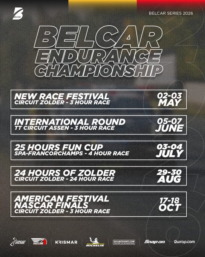 Het Belcar Endurance Championship start op 2 en 3 mei tijdens het traditionele New Race Festival en vormt het begin van een sterke editie van het nationale uithoudingskampioenschap. Het seizoen 2026 telt vijf wedstrijden van drie of vier uur, met als hoogtepunt de 24 Hours of Zolder op 29 en 30 augustus. De deelnemers doen daarbij drie circuits aan: Circuit Zolder, Circuit Assen en Spa-Francorchamps.