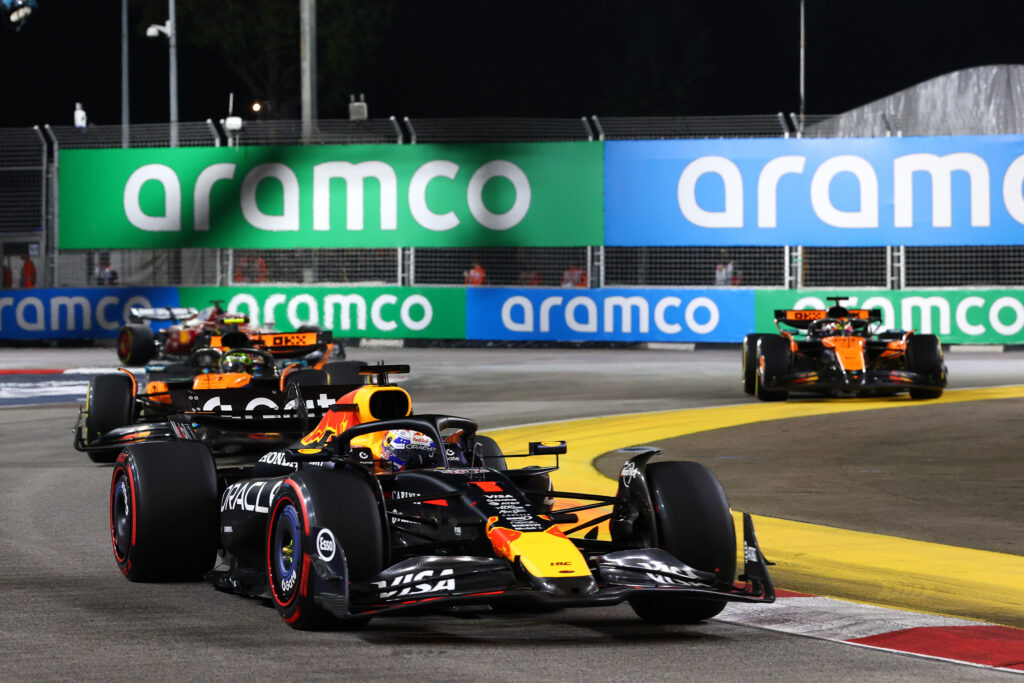 Max Verstappen is tijdens de Grand Prix van Singapore als tweede geëindigd. De Nederlander was niet tevreden over zijn RB21, maar wist Lando Norris in de spannende slotfase achter zich te houden. George Russell reed een ijzersterke race en won met volle overtuiging. Lando Norris pakte de laatste podiumplek en vierde dubbel feest met het binnenhalen van het constructeurskampioenschap voor McLaren. Oscar Piastri pakte de vierde plek, met Kimi Antonelli op P5, in een slopende race waarin opvallend genoeg geen uitvallers waren en geen safety cars verschenen.