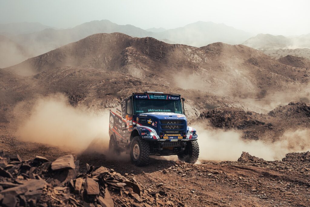 De klassementsproef richting Alula ging over 400 kilometer. ,,De etappe verliep prima,’’ aldus Mitchel net na afloop van de special. ,,We hebben hard gereden, konden een hoog tempo houden zonder risico’s te nemen. We hebben geen fouten gemaakt en geen lekke banden gehad. Bart en Jarno hebben het vandaag weer top gedaan. We zitten er echt goed in met z’n drieën,’’ aldus een tevreden rallyrijder uit Harskamp. Volgens Mitchel had er vandaag mogelijk nog iets meer in het vat gezeten. ,,Een mislukte pitstop gooide roet in het eten. Daar hebben we zes minuten verloren. We staan eerste in het algemeen klassement, maar hadden nog wel iets meer voorsprong kunnen hebben. Al met al zijn we dik tevreden en gaan vol goede moed kijken wat er de komende dagen te halen valt.’’