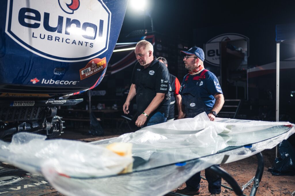 De formatie van Eurol Rally Sport had na de ruim 400 kilometers op snelheid nog een verbindingstraject van 260 kilometer voor de boeg. Op weg naar het bivak in Alula konden Mitchel, Bart en Jarno uitgebreid overleggen hoe ze collega Martin Macik duidelijk kunnen maken dat het signaal van de sentinel een teken is dat de achtervolgende rijder gewoon iets sneller is. De Tsjech, die als fabrikant van de Iveco Evo4 truck over hetzelfde materiaal als Mitchel beschikt, zal zich echter niet nu al bij een rol op het tweede plan willen neerleggen.