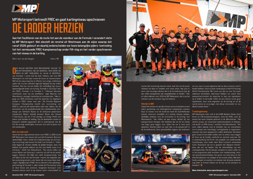 Aan het faciliteren van de route tot aan de voordeur van de Formule 1 verandert niets bij MP Motorsport. Wel sleutelt de renstal uit Westmaas aan de wijze waarop dat vanaf 2026 gebeurt en daarbij onderscheiden we twee belangrijke pijlers: toetreding tot het vernieuwde FREC-kampioenschap onder FIA-vlag en het verder opschroeven van het niveau in de karting.