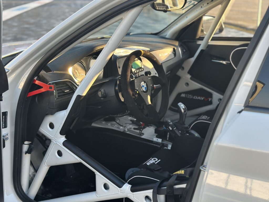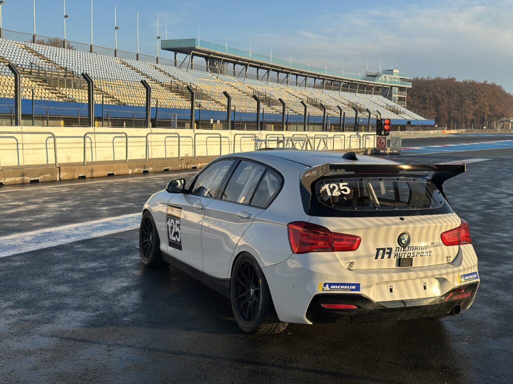 Zaterdag 15 november had Kevin de Regt de eer om de BMW 125i Dayvtec aan de shakedown te mogen onderwerpen, op een koud en vochtig Circuit Zandvoort, tijdens een trackday van de BMW Racing Cup. “Jij bent de 1 Serie-specialist,” zei Davy Lemmens. “Daarom vroeg hij me om een hele dag te testen met zijn nieuwste racewagen. Ik denk dat ik bij elkaar opgeteld zeker honderd ronden over de baan heb gereden.” De algemeen en Klasse 5-kampioen van de Belcar Skylimit Sprint Cup 2025 kent de renstal uit het Zuid-Hollandse Valkenburg al langer, want daar komt zijn 130i Cup vandaan en hij liet zich eerder dit jaar een M240i Dayvtec aanmeten voor een test, om deze mee te nemen in zijn overwegingen voor het nieuwe seizoen. Ditmaal echter, in kil herfstweer, mocht hij zich concentreren op een bolide die zich spoedig moet gaan vermenigvuldigen om de BMW Racing Series te vullen. “Meters maken, dus. Uitproberen hoe de auto zich zou houden tijdens een dag intensief rijden, het gedrag op het circuit ervaren en eventuele onregelmatigheden en aandachtspunten in de optiek van de rijder en de engineer vaststellen. Tussen de stints van gemiddeld een half tot een vol uur door hielden we korte evaluaties.” Gevraagd naar zijn bevindingen van de 125i Dayvtec hoeft De Regt niet lang na te denken. “Die kan ik in één woord samenvatten: een superauto. Hij stuurt zo verschrikkelijk goed en voelt heel licht aan, bijna als een Suzuki Swift met de wegligging van bij wijze van spreken een Lamborghini. Onderstuur treedt nauwelijks op, eerder een goed doseerbare portie overstuur, zoals je dat wilt bij een achterwielaandrijver. De bochtsnelheden liggen extreem hoog, mede door de gunstige gewichtsverdeling als gevolg van de relatief lichte viercilindermotor. Ik vind hem heel wendbaar en direct reageren. Je hoeft maar even aan het stuur te draaien en er gebeurt gelijk iets. Het tweeliter turboblok kent een mooie vermogensafgifte, ook al komt de auto een stukje tekort ten opzichte van de M240i Dayvtec, wat een bewuste keuze vormt in het kader van de positionering. In de cockpit kijk je rechtstreeks uit op een AIM Solo-display, dat achter het stuur zit en ervoor zorgt dat je je goed op het rijden kunt focussen. Duidelijk een signaal dat er goed over de ergonomie is nagedacht. Verder heb je keuze uit verschillende settings voor het ABS en de traction control, wat deze BMW toegankelijk maakt voor beginnende coureurs.” Of hij zelf de 125i Dayvtec als zijn volgende racewagen bestempelt, laat De Regt nog even in het midden. “Mijn 130i staat te koop en meer ga ik niet over zeggen,” knipoogt hij.