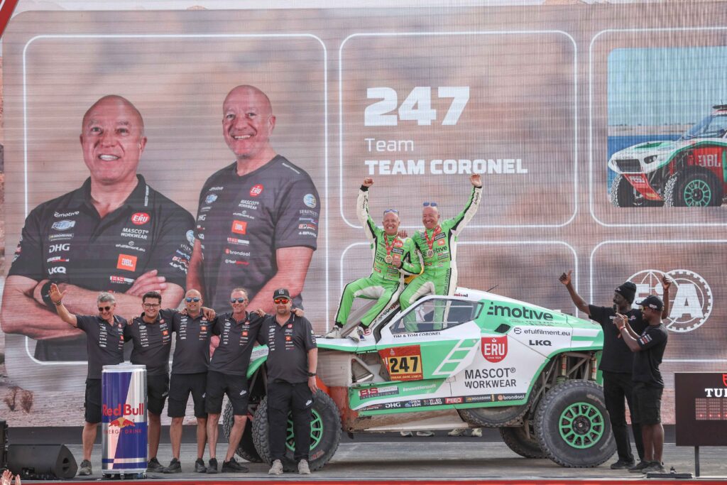 Tim en Tom Coronel hebben de Dakar Rally 2026 afgesloten met een 24e plaats in de laatste etappe, slechts ruim vijf minuten achter de dagwinnaar. In de korte lus van 100 kilometer rondom Yanbu lieten de broers nog een keer zien dat het tempo er goed in zit. “Er zat heel veel snelheid in,” zegt Tom. “Vandaag was ook ons beste resultaat van de hele rally.”